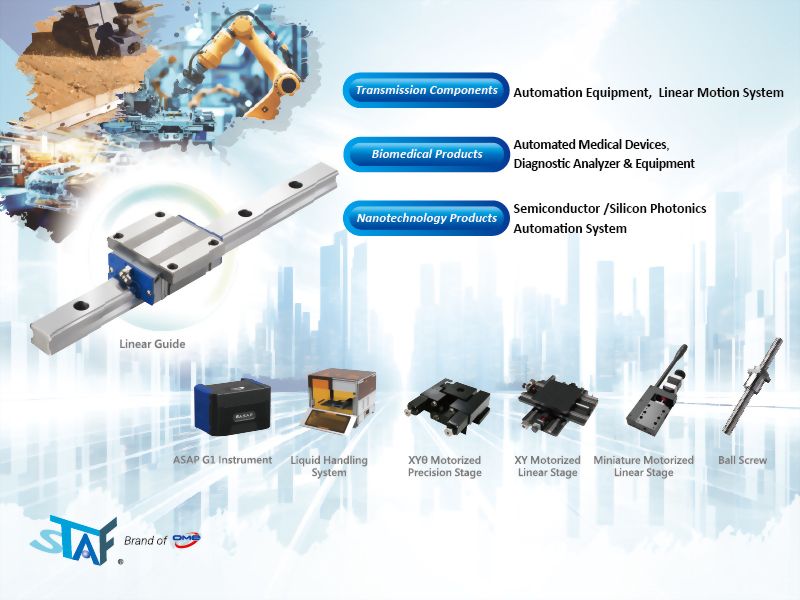 Founded in 2004, OME Technology provides over 1,400 different product items of linear motion components. Moreover, with 1 mechanical Lab, 2 plants located in Taiwan, OME offers its high quality products and exquisite services to over 250 universal customers including the premium brands in global industrial world.