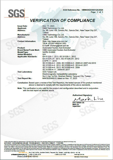 LIQUID HANDLING SYSTEM CE / SGS Certification